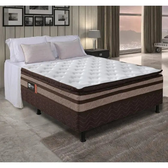 Cama Box Casal Conjugada (138X188) D28 Marrom BahamasA cama box conjugada Bahamas com Pillow da Design Colchões é perfeita e atende completamente as suas necessidades. Desenvolvida com materiais de alta qualidade, ela é confeccionada em madeira tratada, proveniente de áreas reflorestadas, destinadas para esse fim, garantindo um móvel não só de grande durabilidade, como também ecologicamente correto.Esta cama box conta com espuma D28 e também com revestimento em tecido 100% poliéster na lateral e na parte superior tecido malha 240g/m2. Acompanha conjunto de pés plásticos que ajudam na estabilização da mesma. Além de todas essas características funcionais, ela é linda e deixará o seu quarto muito mais bonito.