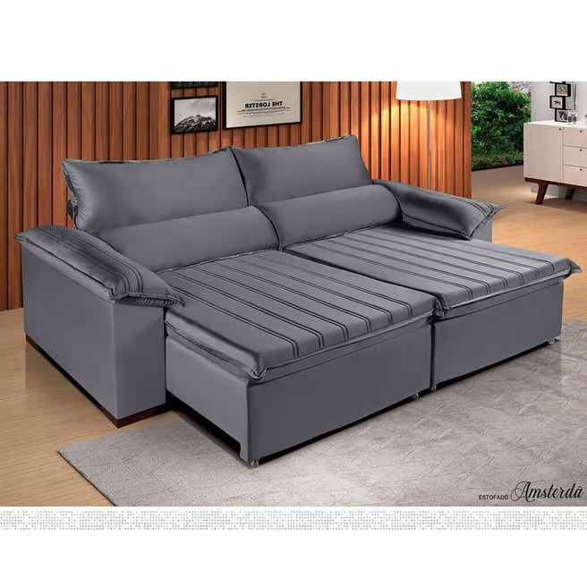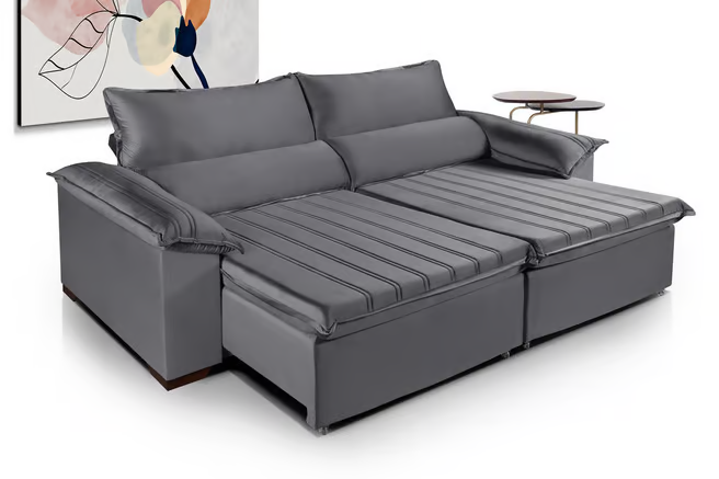 Os assentos deste mobiliário são confeccionados com espuma de densidade D26, proporcionando conforto e durabilidade. O uso de percintas elásticas garante uma estrutura bem equilibrada, enquanto o feltro aplicada protege a espuma do atrito e desgaste. Os encostos utilizam fibra de silicone, que contribui para um suporte macio e aconchegante. A estrutura é feita de eucalipto proveniente de reflorestamento, destacando-se como uma escolha ecologicamente correta. Para a fixação, são utilizados grampos galvanizados anti-ferrugem, assegurando maior longevidade ao produto. As articulações dos encostos são fabricadas em aço galvanizado altamente resistente, com um banho de zinco que previne a ferrugem, resultando em um móvel robusto e sustentável.
